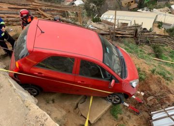 Descargar artículo en formato PDF VALPARAÍSO.- Una compleja situación se vive en el cerro San Roque de Valparaíso, luego de que un automóvil quedara al borde de un barranco, a…