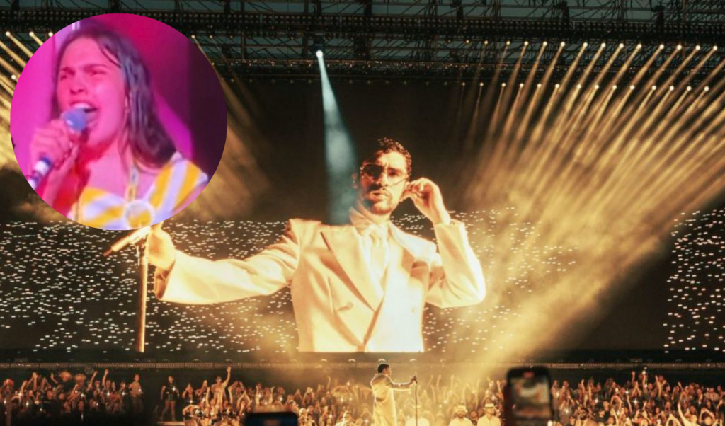 LIMACHE. – La noche de este domingo, Bad Bunny cerró con lleno total su tercera y última presentación en el Estadio Nacional, espectáculo que dejó varios momentos memorables, entre ellos el protagonizado por una fanática oriunda de Limache.