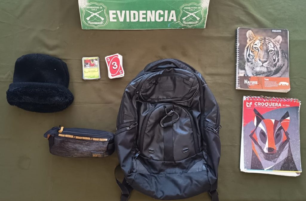 El detenido, de 19 años, mantenía antecedentes policiales y al momento de la aprehensión, portaba un arma blanca y la mochila robada con todas sus especies, incluyendo la colección de cartas, que pudieron ser devueltas a la víctima.