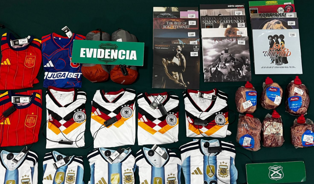 Entre las especies recuperadas se contabilizan camisetas de fútbol, carne envasada, vinilos y sacos de dormir, entre otros artículos, varios de los cuales aún mantenían sus sensores y sistemas de alarma activos, lo que reforzó la presunción de su origen ilícito.