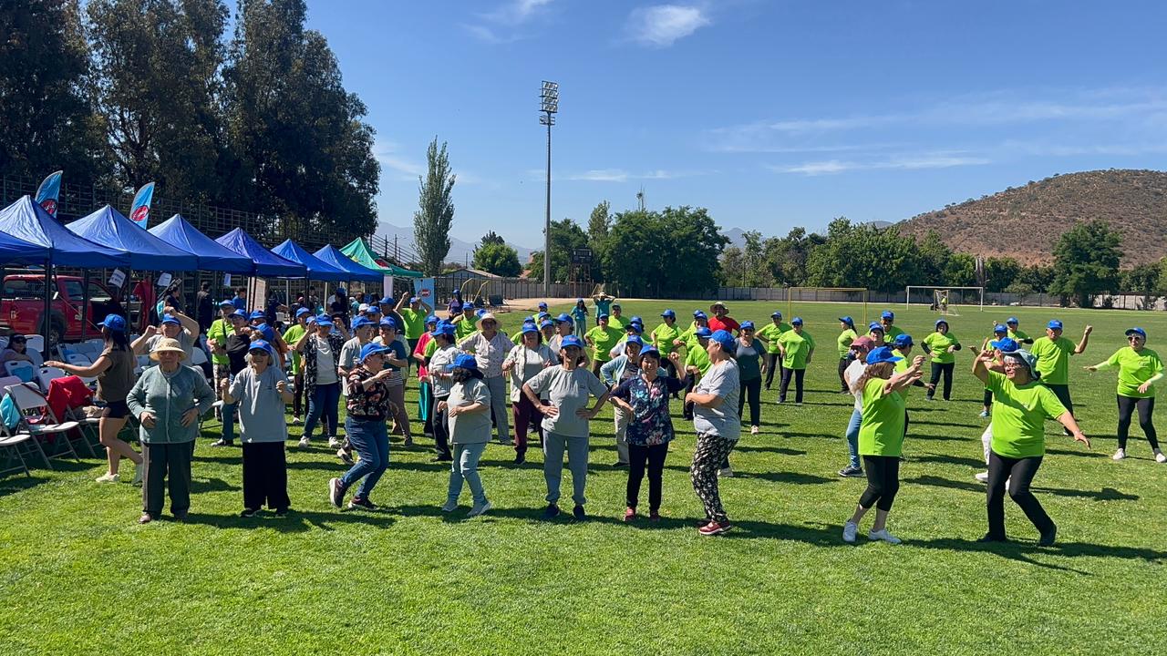 El encuentro se llevó a cabo en el estadio municipal de la comuna convocando a más de 50 personas mayores quienes participaron en actividades dirigidas por profesionales de la salud.