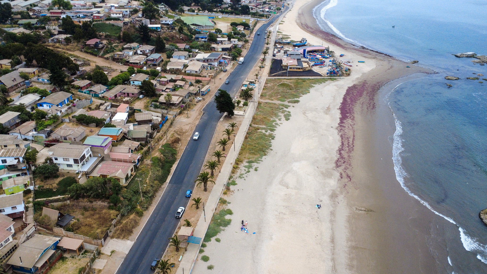 Precisamente frente a este emblemático sector, se pavimentaron 600 metros lineales, usando escoria en el 40% de la base granular; y en el 30% de la carpeta asfáltica. El mejoramiento además considera espacio para estacionamientos a ambos lados de la calzada, lo que facilitará la afluencia de público durante el verano tanto a la playa como a la caleta.
