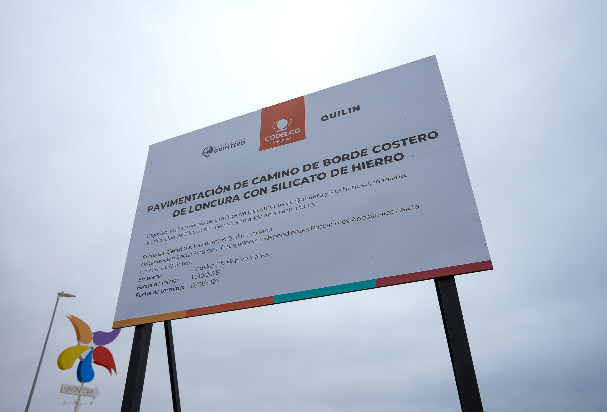 El primero de estos proyectos es la pavimentación del camino costero de Loncura, turística localidad de la comuna de Quintero, que recibe una importante afluencia de público en la época estival, principalmente por las cocinerías y puestos de venta de su caleta de pescadores.