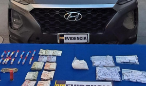 Con la orden judicial de entrada y registro en su domicilio del sector Lo Narváez, se incautaron 85 gramos de clorhidrato de cocaína, 127 dosis de cocaína base, municiones, fuegos artificiales, un vehículo y dinero en efectivo.