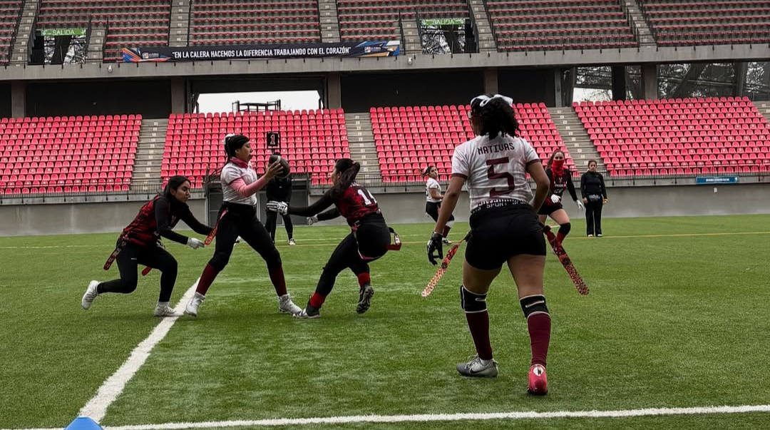 El equipo de football americano, Diablos Rojos, y el elenco de flag football, Diablas, disputaron partidos amistosos en el césped sintético del recinto calerano.