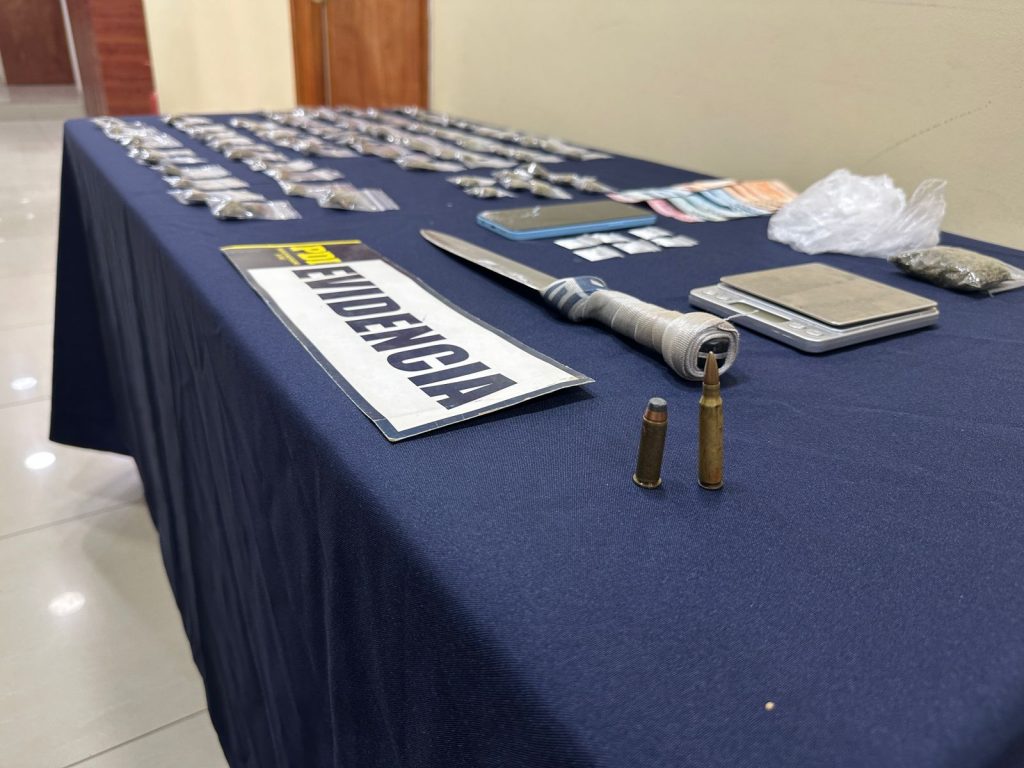 Tras la aprehensión, los detectives ingresaron a un domicilio ubicado en el sector de las parcelas de Huaquén, donde incautaron 16 gramos de clorhidrato de cocaína, 120 gramos de cannabis sativa, además de un vehículo, un cuchillo, munición de guerra y diversos elementos utilizados para la dosificación de drogas.