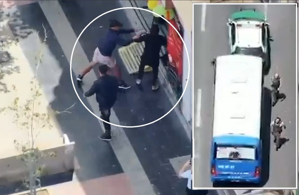Los sujetos se movilizaban por el centro y atacaron a una mujer, secuencia que fue captada por un dron de vigilancia