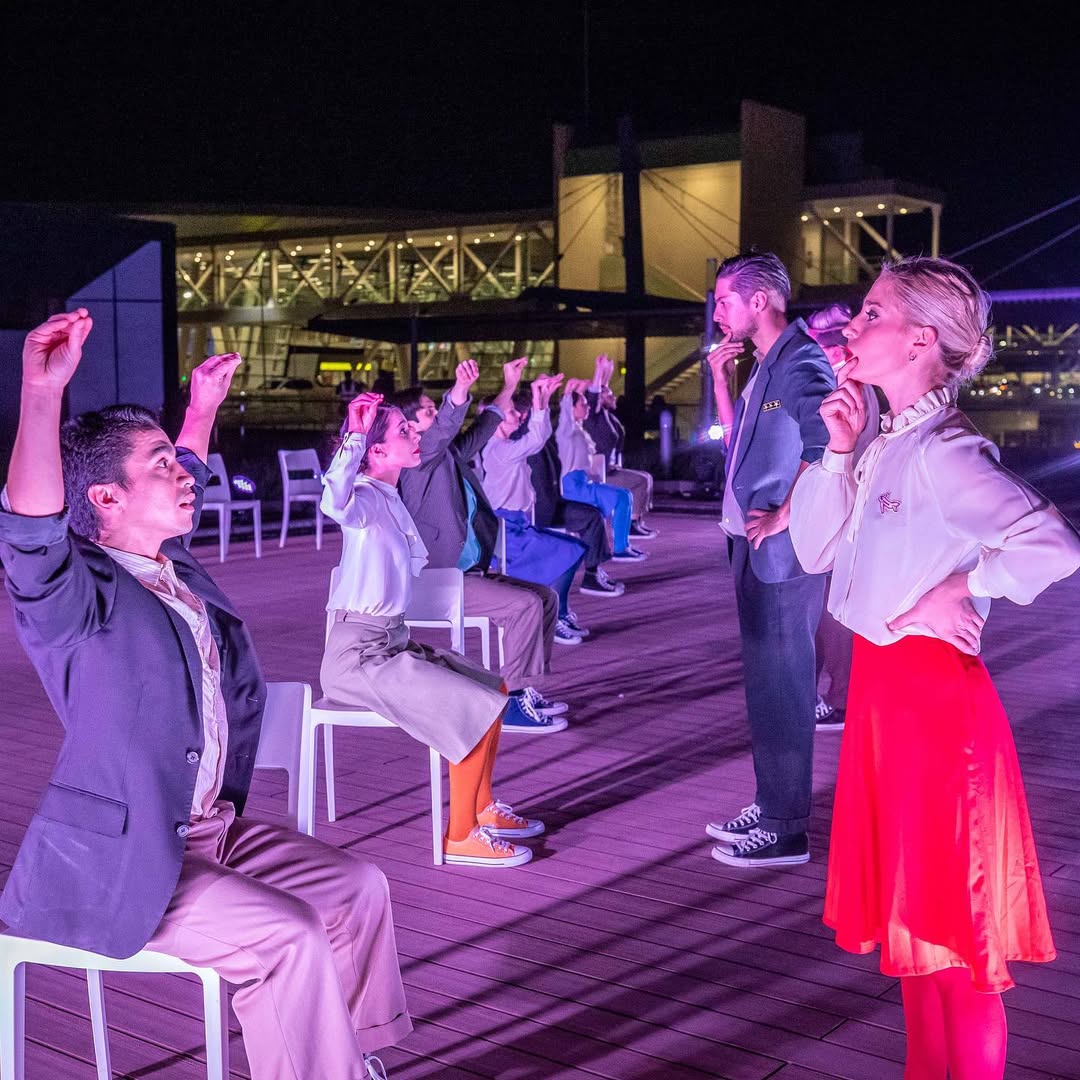La creación del destacado artista francés Mathieu Guilhaumon, director y coreógrafo del elenco, fue estrenada con gran éxito en el año 2022, inaugurando el anfiteatro del aeropuerto de Santiago. Se trata de una pieza creada para 14 bailarines en escena, que recrea las diversas dinámicas que se producen en los aeropuertos, invitando al público a un mundo de fantasía donde la alegría y la ilusión están presentes en cada momento.