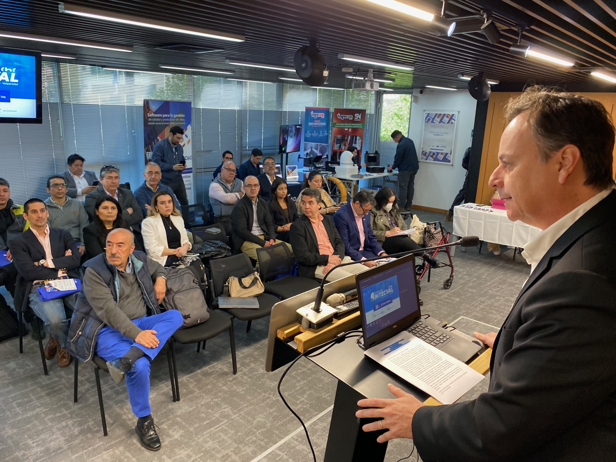 En tanto, Christian Morales, presidente de la Comisión de Sostenibilidad e Innovación de la CChC Valparaíso, organizadora del evento, resaltó el trabajo gremial en el contexto de la Hoja de Ruta de Innovación 2025–2027, que pone foco en estandarizar, digitalizar y medir. Expo INTECVAL acelera la adopción tecnológica, combinando acciones de promoción de probada eficacia, para pasar del interés a pruebas de concepto con fecha.”