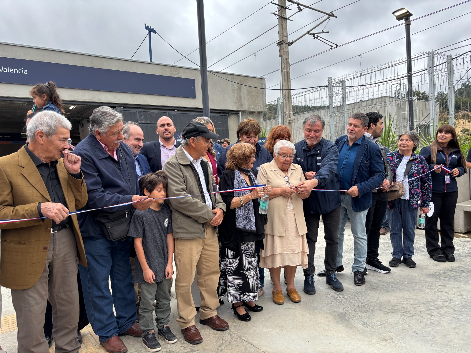 QUILPUÉ. – La red del Tren Limache-Puerto sumó oficialmente su estación número 21. Este sábado fue inaugurada la Estación Valencia, en Quilpué, incorporándose de manera definitiva al recorrido ferroviario y concretando una demanda histórica de los vecinos del sector.