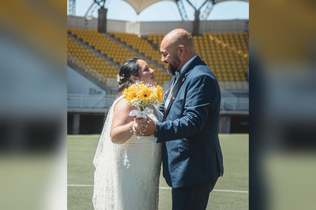 Vinka y Danilo dieron el “sí” el mismo día que jugaba San Luis de Quillota y, vestidos de novios, llegaron hasta el estadio para celebrar su unión junto al club que marcó su historia de amor.