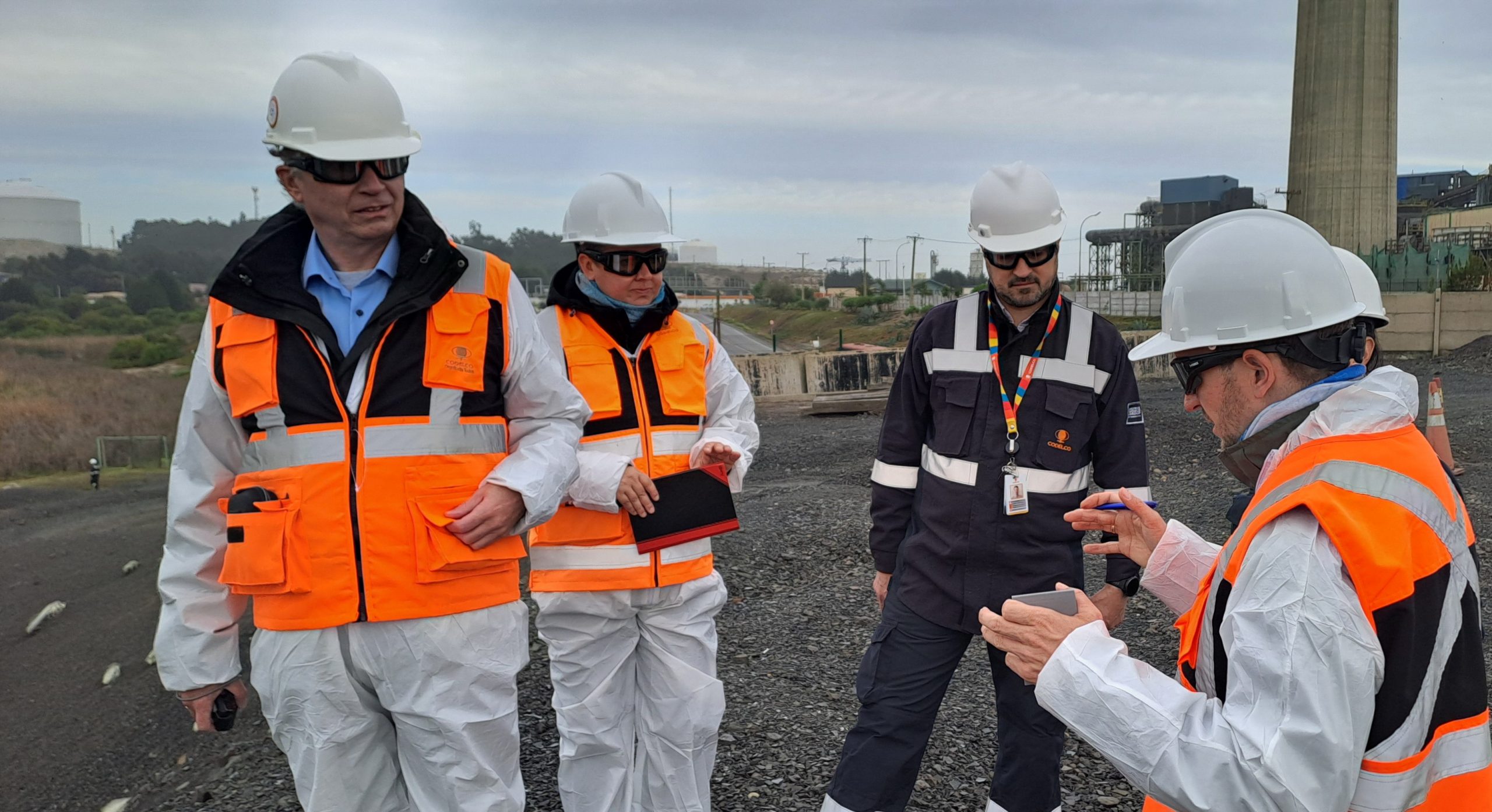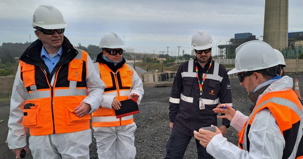 Dada esa experiencia, una delegación de especialistas alemanes visitó División Ventanas, donde conoció detalles sobre el depósito de escoria de la Fundición y, luego, visitó el recinto, donde fueron orientados técnicamente por la gerenta de Sustentabilidad, Marcela Pantoja Camus.