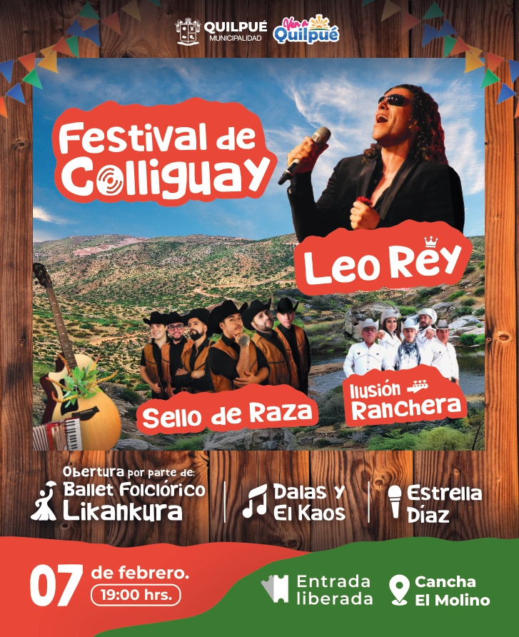 QUILPUÉ.- El valle de Colliguay volverá a transformarse en punto de encuentro para vecinos y visitantes con una nueva edición de su tradicional festival estival, programado para el próximo 7 de febrero. La jornada se desarrollará desde las 19:00 horas en la cancha del Club Deportivo El Molino, combinando espectáculos en vivo con identidad local y oferta gastronómica.