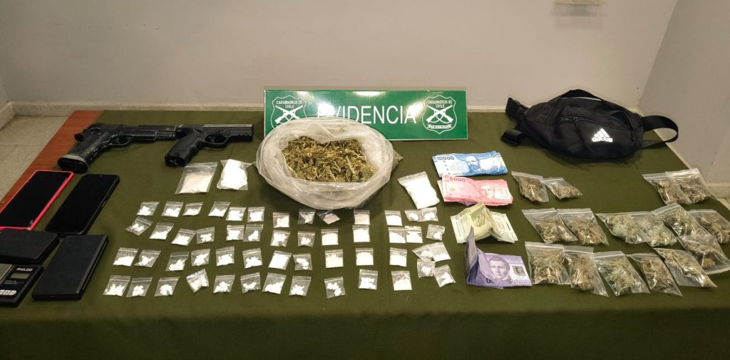 Fue seguido hasta su domicilio, donde Carabineros encontró dos pistolas, droga, dinero en efectivo y una pesa gramera.