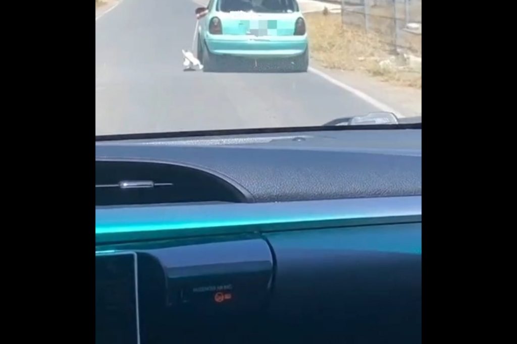 Video muestra a perrito siendo arrastrado por auto. Conductor se habría justificado diciendo que “lo había bañado y lo estaba secando al aire libre”.