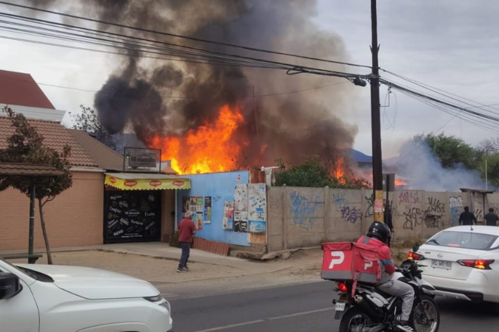 El siniestro afectó completamente una estructura ocupada de forma irregular en Avenida 21 de Mayo, generando un amplio operativo de Bomberos, Carabineros y equipos municipales.