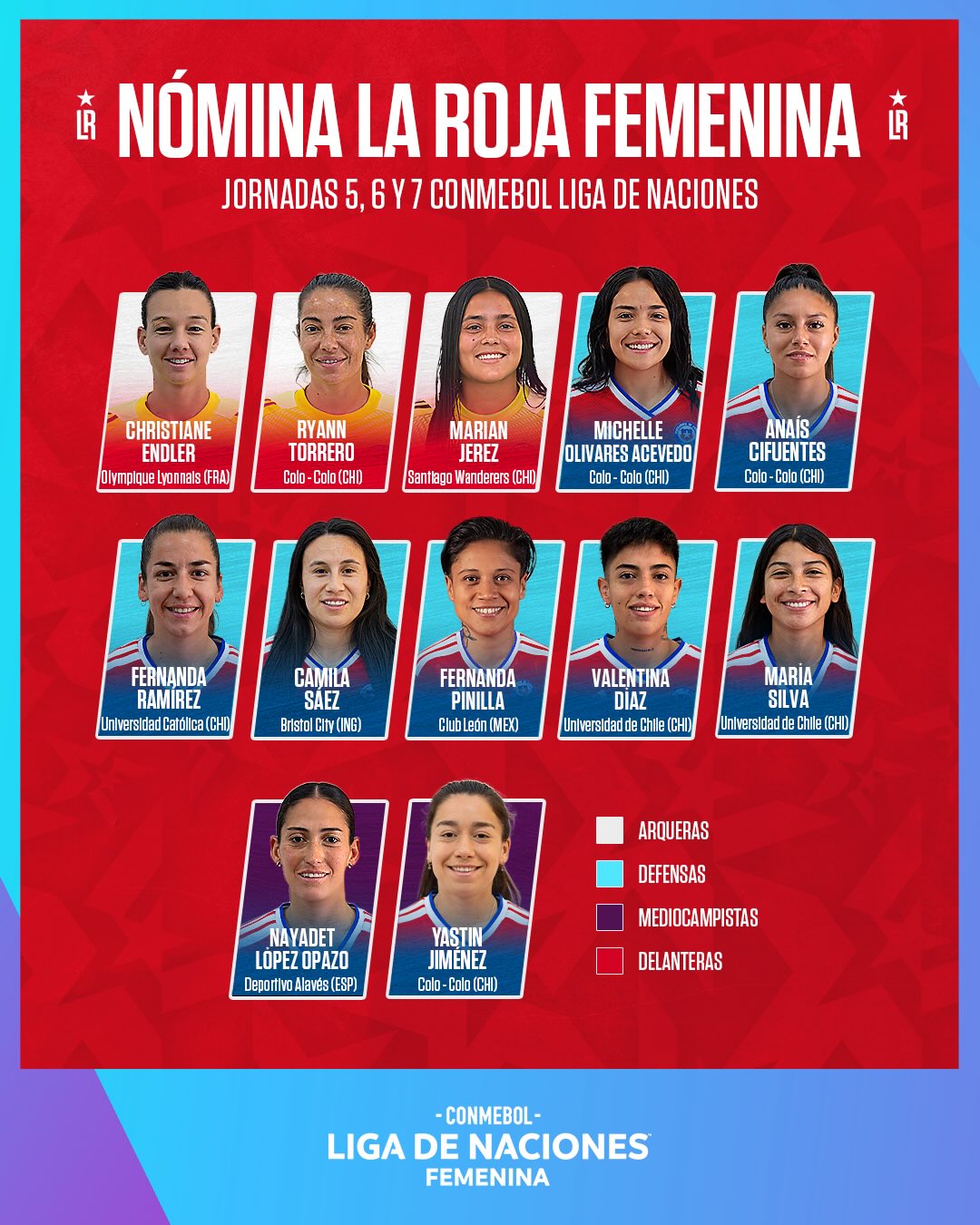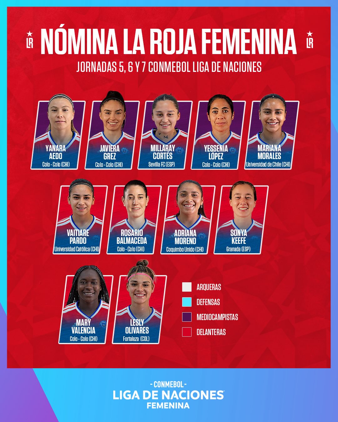 Además de la joven calerana, destaca la presencia de la oriunda de El Melón, Camila Sáez, experimentada defensora que juega en Europa hace ya varias temporadas y que confirma su condición de líder y titular en la Selección.