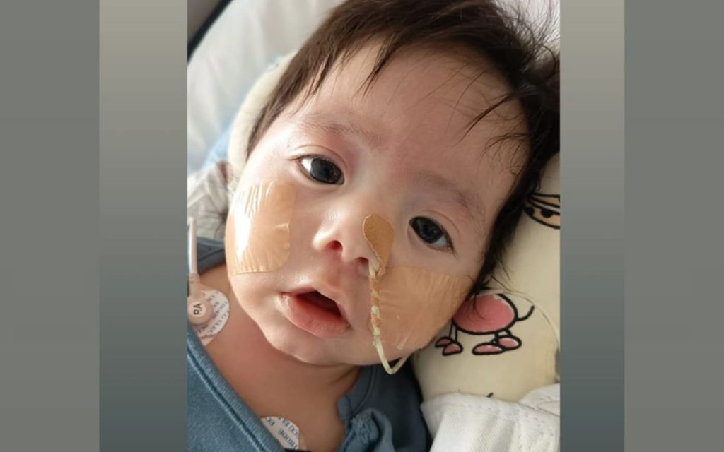 Gracias a la terapia que está recibiendo, el lactante está comenzando a abrir sus manitos. Antes, por su hipotonía, las mantenía recogidas. Recientemente, se le realizó una gastrotomía, que es un procedimiento que consiste en la introducción de una sonda de alimentación en el estómago. Por fortuna, la intervención resultó un éxito, por lo que ahora el menor está recibiendo los nutrientes que requiere.