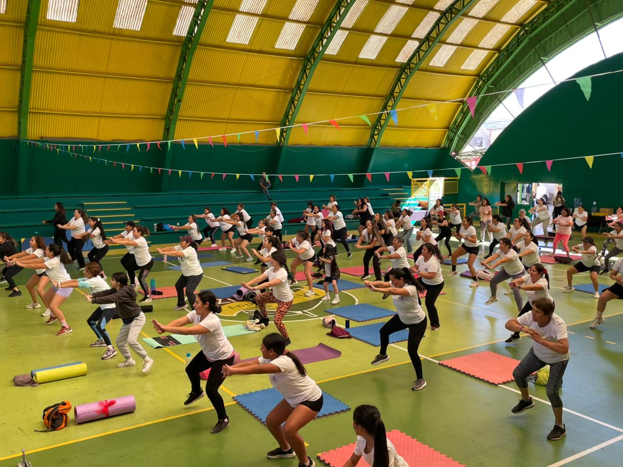Durante la jornada, las asistentes participaron en distintas disciplinas como yoga, GAP, baile entretenido y aerobox, en un ambiente marcado por la energía, la música y el entusiasmo, donde el deporte se convirtió en un espacio de encuentro y recreación.