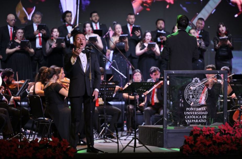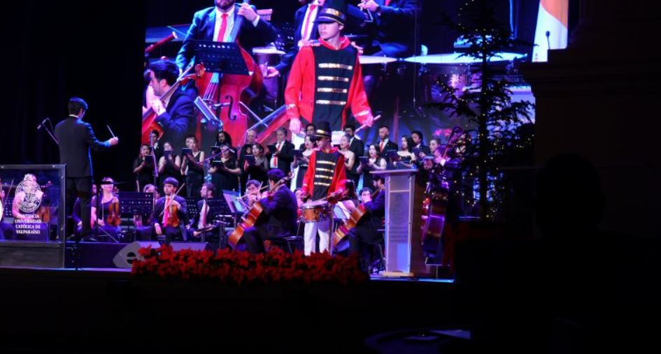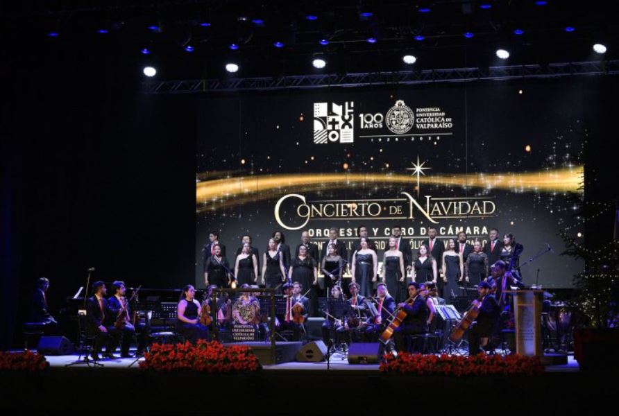 MIRADA UNIVERSITARIA.- Una vez más se desarrolló el tradicional Concierto de Navidad de la Pontificia Universidad Católica de Valparaíso, instancia de gran nivel en la que se presentaron la Orquesta y el Coro de Cámara de la casa de estudios, que ofrecieron una selección de grandes clásicos de la música internacional, abarcando los siglos XVIII y XX.