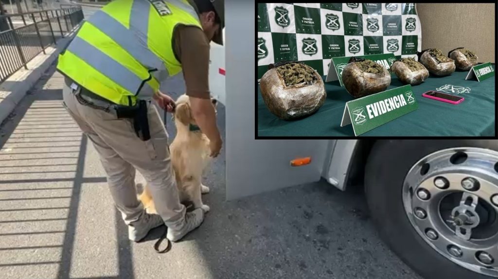 La fiscalización ocurrió en la ruta 5 Norte, a la altura de la comuna de Nogales. Los oficiales del OS7 Valparaíso, con la ayuda de su can policial, detectaron la droga dentro de la maleta, que iba en el porta equipaje del bus.