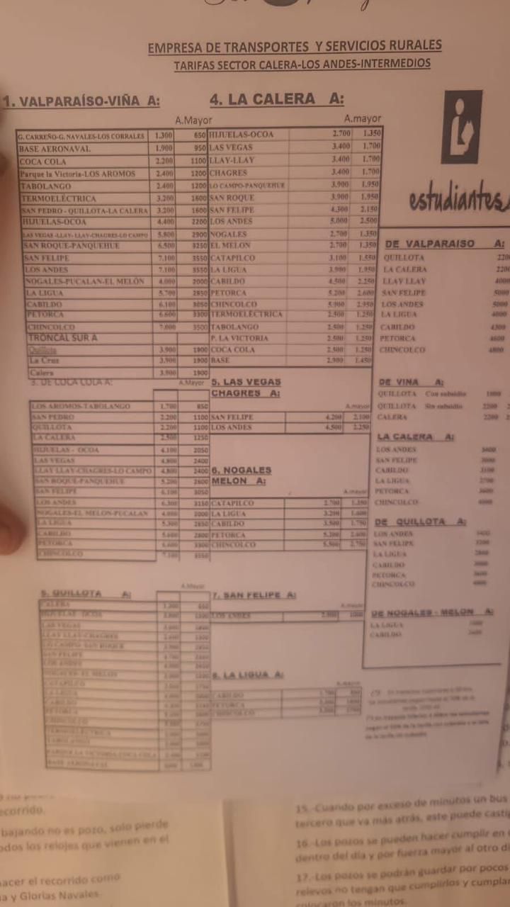 En recorridos hacia la zona costera, los valores también aumentaron: desde La Ligua a Maitencillo costará $1.950, a Zapallar $1.800 y a Papudo $1.700, mismo valor en el tramo entre La Ligua y Cabildo. Asimismo, el costo del pasaje desde La Calera o Quillota hasta Valparaíso aumentó de golpe $700 pesos, ya que ahora es de $3.200, cuando hace apenas dos días era de $2.500.