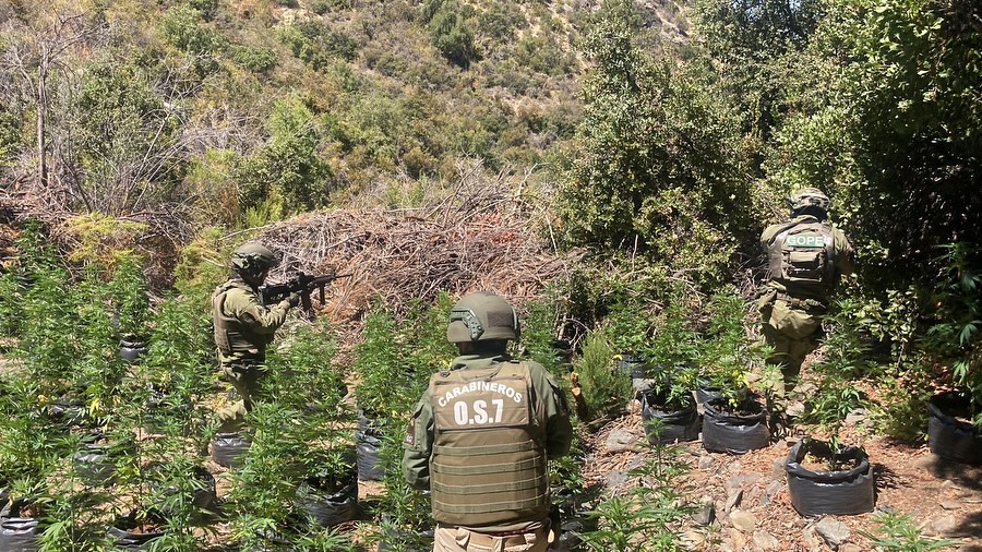Un nuevo golpe al narcotráfico se concretó en la comuna de Petorca, luego que personal especializado de la Sección O.S.7 Aconcagua de Carabineros, con apoyo del Grupo de Operaciones Policiales Especiales (GOPE) de Santiago, detectara y desarticulara un importante cultivo ilegal de cannabis en el sector Quebrada Las Carditas, localidad de Las Palmas.