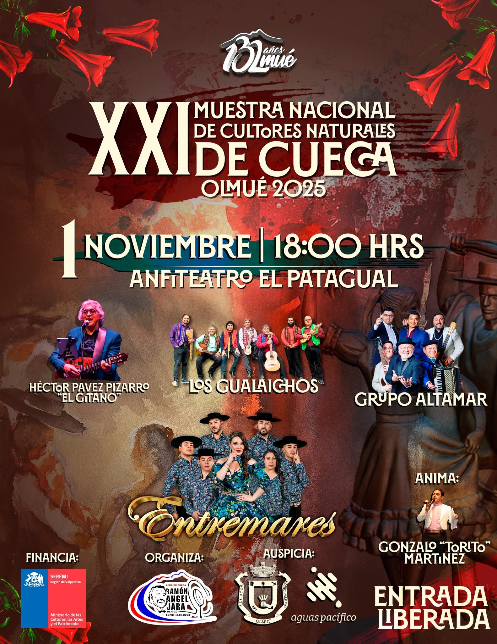 Organizado por el Club de Cueca Ramón Ángel Jara y con el patrocinio de la Ilustre Municipalidad de Olmué, este encuentro cultural reúne a cultores y bailarines provenientes de diversas regiones del país, quienes mostrarán los variados estilos y expresiones de nuestro baile nacional.