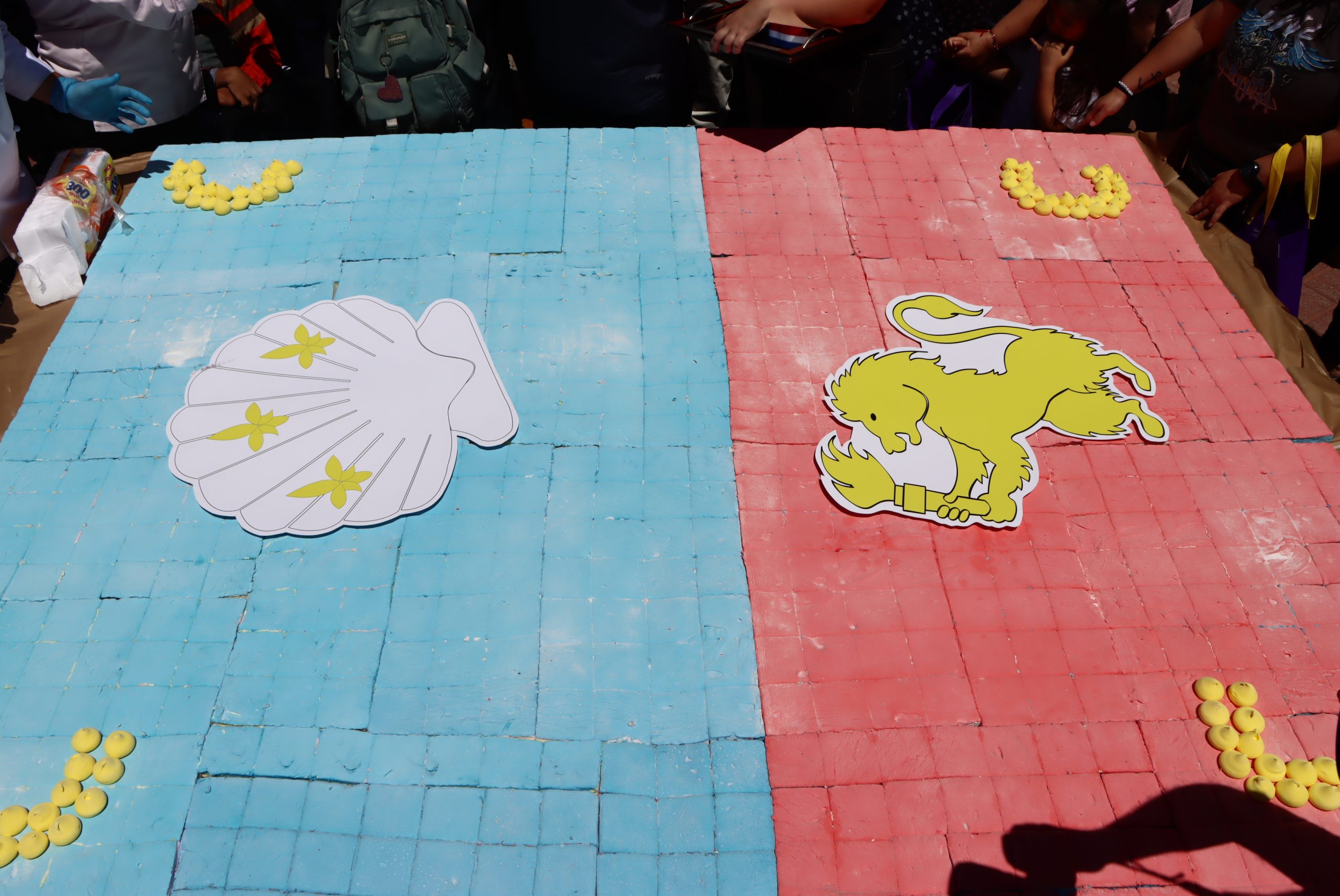 QUILLOTA.- En la Plaza de Armas, cientos de quillotanos, quillotanas, autoridades y visitantes de otras comunas se reunieron para presenciar la elaboración de la sustancia más grande de la región, una intervención simbólica que representó el Escudo de Quillota, elaborado con productos artesanales de sustancia en una superficie de nueve metros cuadrados.