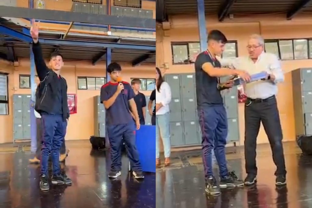 El estudiante, que cursa cuarto medio, regresó al establecimiento tras el logro deportivo conseguido en Ecuador, donde el cuadro caturro alcanzó el título continental en la categoría juvenil. Su vuelta a clases estuvo marcada por una ovación de sus compañeros, docentes y funcionarios, que lo esperaron con globos, aplausos y mensajes de reconocimiento.
