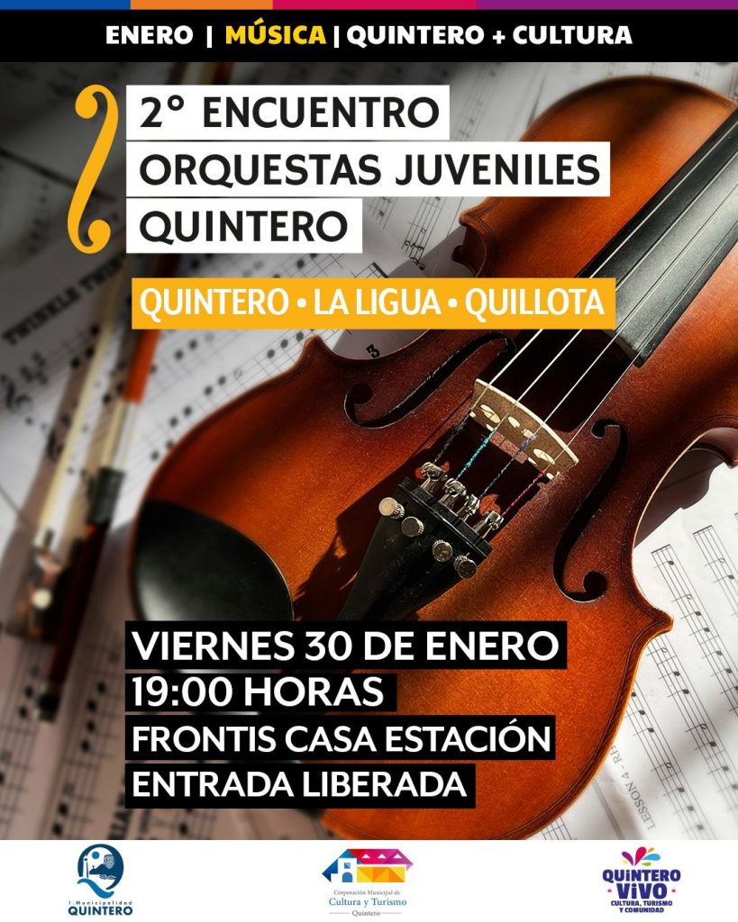 QUINTERO.- Quintero será escenario de una jornada dedicada al talento musical joven con la realización del II Encuentro Tricomunal de Orquestas Infantiles y Juveniles, iniciativa organizada por la Corporación Municipal de Cultura y Turismo de la comuna.