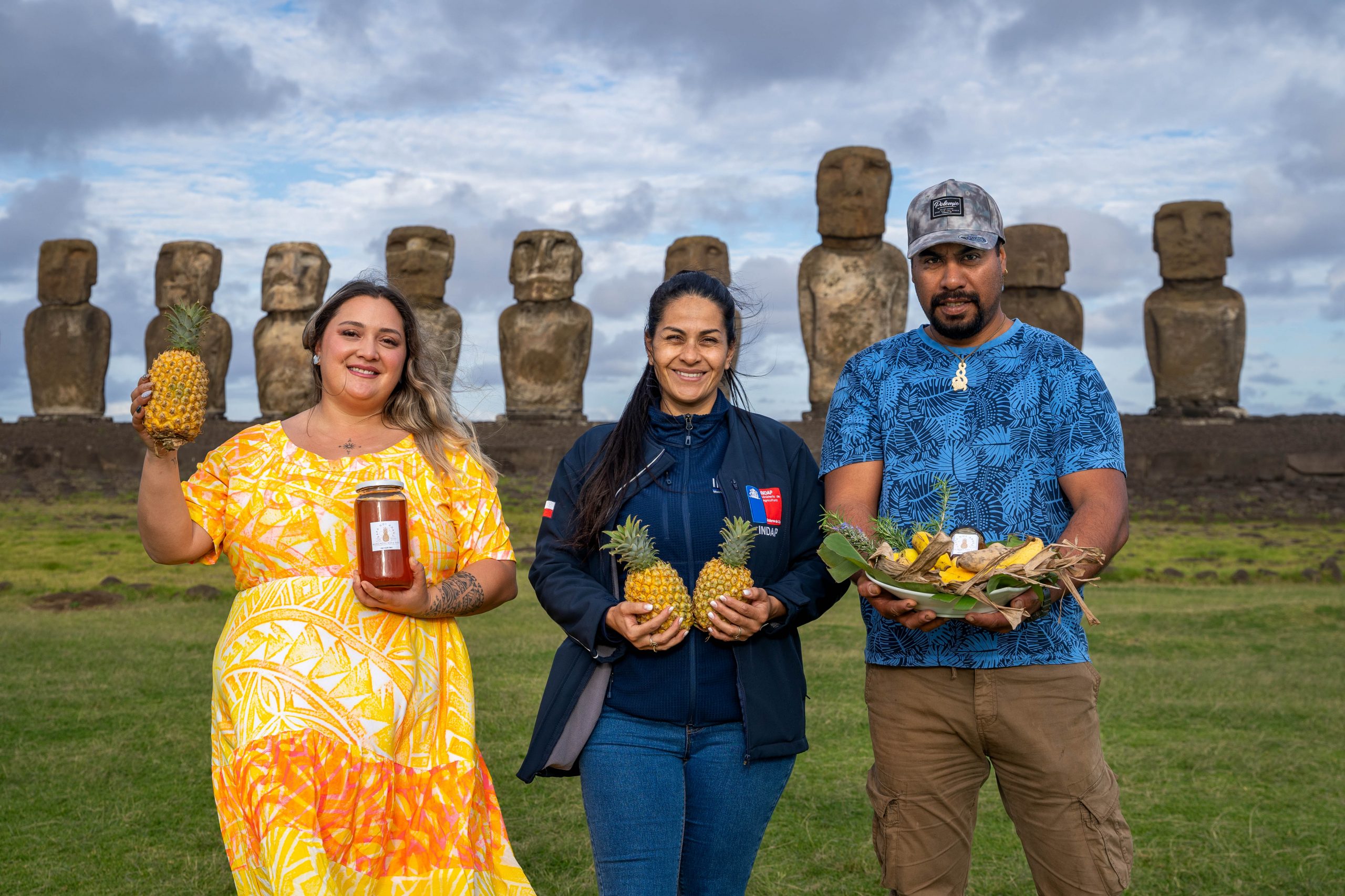 Rapa Nui: Frutas tropicales y cultivos locales como camote, taro, manioka, piña, guayaba, miel y papaya.