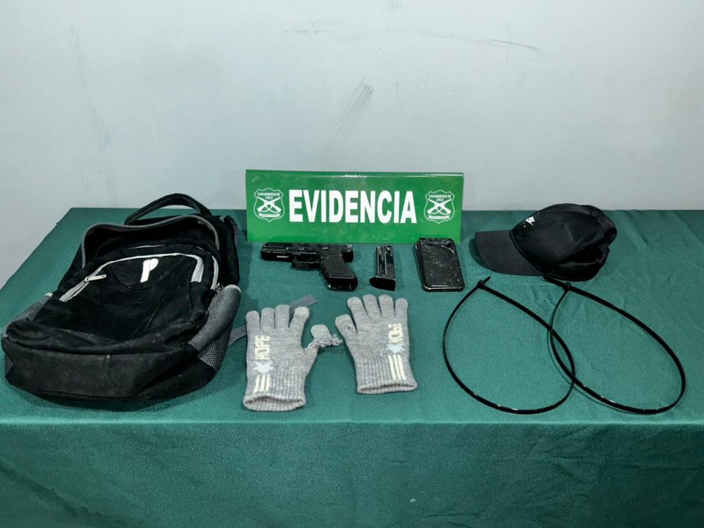 Gracias a la rápida y oportuna respuesta del personal de Carabineros en servicio, se logró interceptar y detener a uno de los asaltantes en la jornada de este jueves. Al momento de su captura, el sujeto portaba un arma de fantasía que había sido adaptada para el disparo y parte del dinero robado.