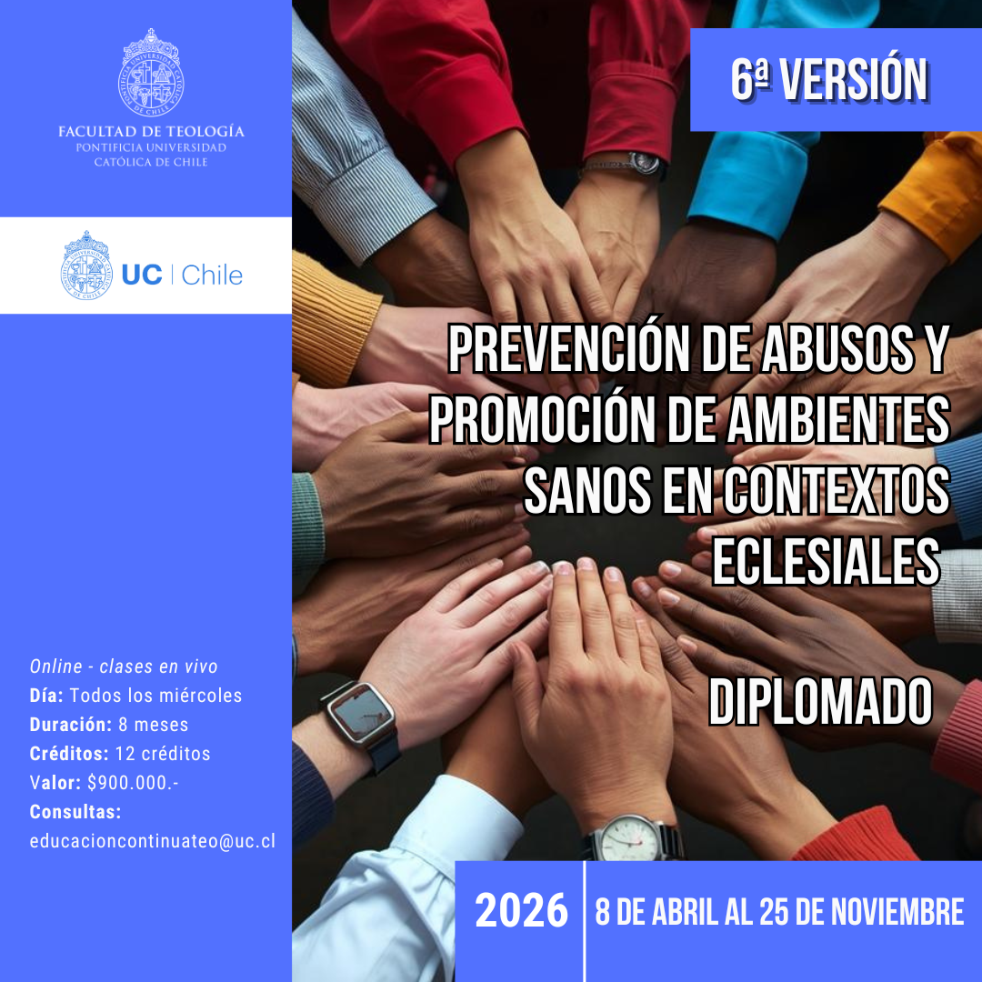 MIRADA UNIVERSITARIA.- La Facultad de Teología de la Pontificia Universidad Católica de Chile abrió las inscripciones para la 6ª versión del Diplomado en Prevención de Abusos y Promoción de Ambientes Sanos en Contextos Eclesiales, un programa que se ha convertido en referente en Latinoamérica para la formación de agentes pastorales, líderes comunitarios y profesionales comprometidos con la protección y el buen trato.
