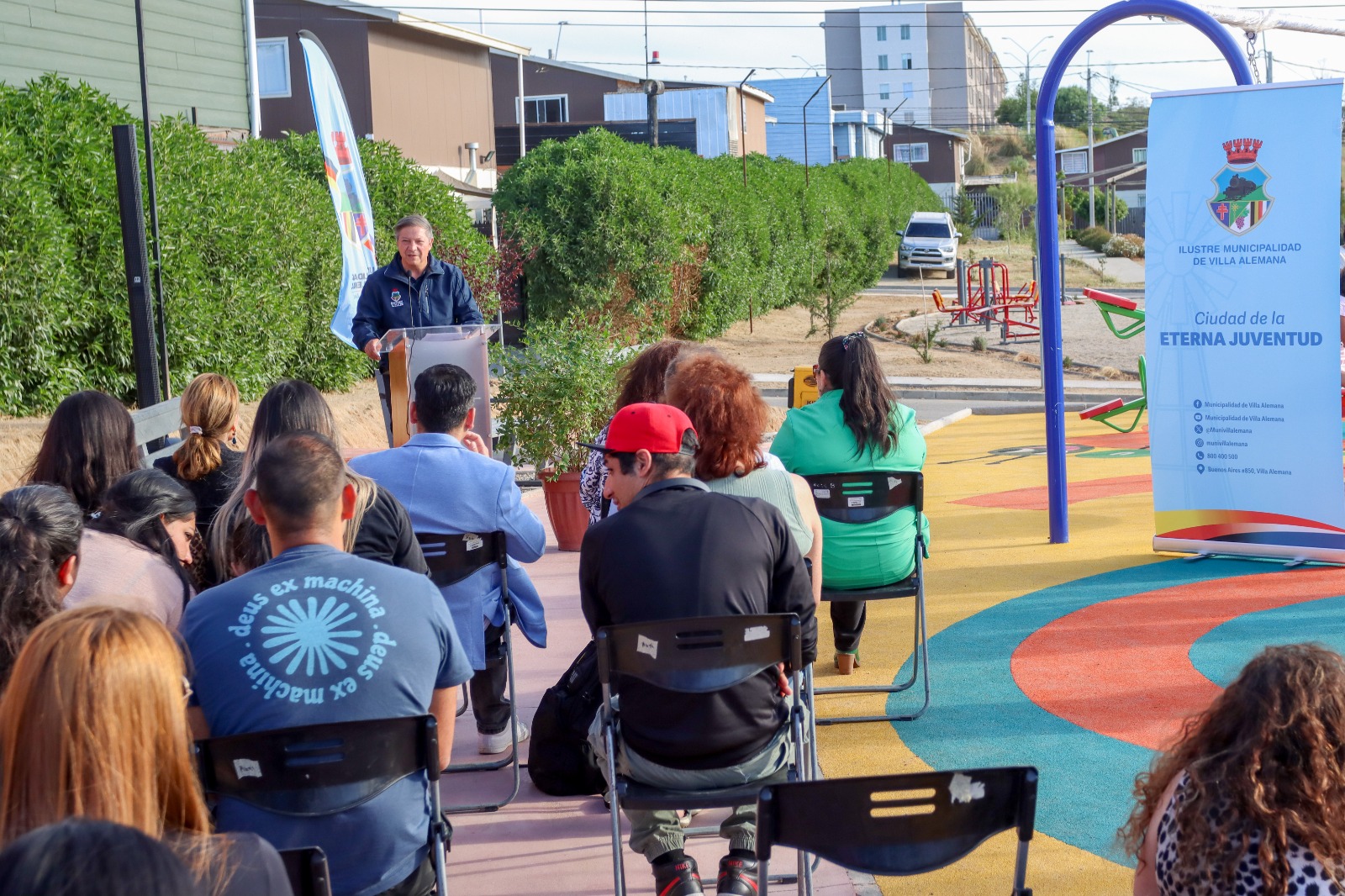 VILLA ALEMANA.- En una ceremonia marcada por la alegría vecinal, la Municipalidad de Villa Alemana inauguró la renovada Plaza Las Piedras en Villa Alto el Canelo, un espacio de más de 1.600 m² que ahora cuenta con senderos accesibles, juegos inclusivos y áreas verdes renovadas. La obra, gestionada por el municipio, fue financiada con el Fondo Regional de Iniciativa Local (FRIL) y beneficiará a cientos de familias del sector sur de la comuna.